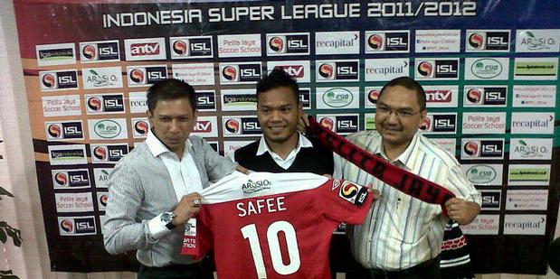 Striker Pelita Jaya Karawang, Safee Sali (tengah), bersama Manajer Pelita Jaya, Lalu Mara Satriawangsa (kanan), GM Pelita Jaya, Iwan Budianto (kiri) .BANDUNG - Pemain tim nasional Malaysia, Safee Sali, dipastikan bakal turun dalam laga kandang mereka ke Stadion si Jalak Harupat, Kabupaten Bandung, Minggu (5/2/2012). Mereka bakal menantang tim asal Bandung Persib usai kemenangan mereka atas tim seteru dari Jakarta, Persija.